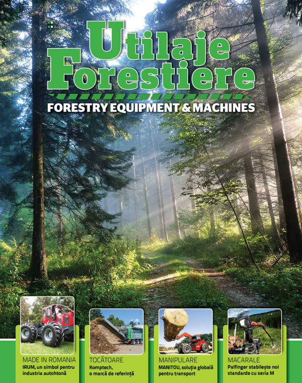 Reviste Utilaje forestiere – din sumar: MADE IN ROMANIA – IRUM, un simbol pentru industria autohtona; TOCATOARE – Komptech, o marca de referinta; MANIPULARE – MANITOU, solutia globala pentru transport; MACARALE – Palfinger stabileste noi standarde cu seria M.