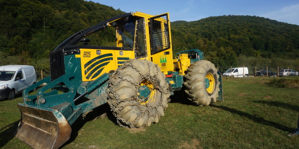 HSM a prezentat în standul propriu cât și pe terenul de demonstrații un tractor articulat forestier HSM 805 S.